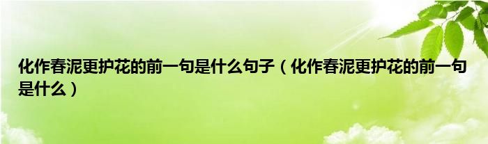 本文,化作春泥更护花的前一句是什么句子,化作春泥更护花的前一句是什么到此就分享完毕,希望对大家有所帮助。