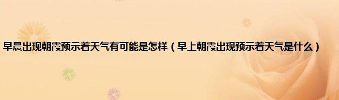 本文,早晨出现朝霞预示着天气有可能是怎样,早上朝霞出现预示着天气是什么到此就分享完毕,希望对大家有所帮助。