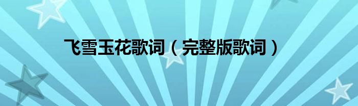 大家好,飞雪玉花歌词,完整版歌词很多人还不知道,现在让我们一起来看看吧!