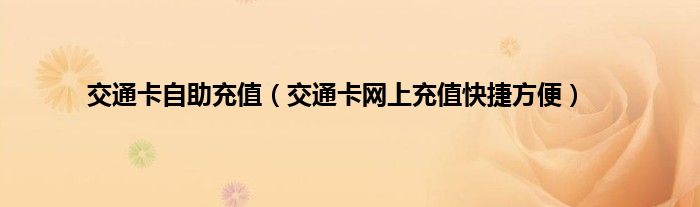 本文,交通卡自助充值,交通卡网上充值快捷方便到此就分享完毕,希望对大家有所帮助。