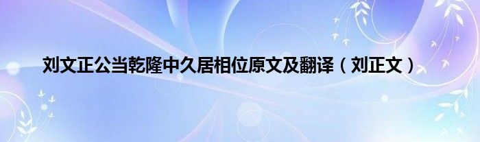 大家好,小问来为大家解答以上问题。刘文正公当乾隆中久居相位原文及翻译,刘正文这个很多人还不知道,现在让我们一起来看看吧!