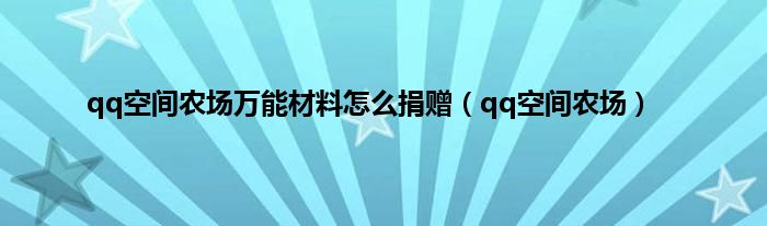 以上就是【qq空间农场万能材料怎么捐赠,qq空间农场】相关内容。