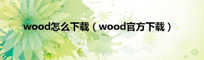 以上就是【wood怎么下载,wood官方下载】相关内容。