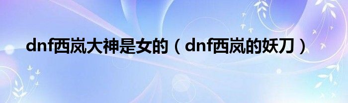 以上就是【dnf西岚大神是女的,dnf西岚的妖刀】相关内容。