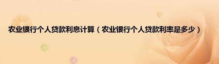 本文,农业银行个人贷款利息计算,农业银行个人贷款利率是多少到此就分享完毕,希望对大家有所帮助。