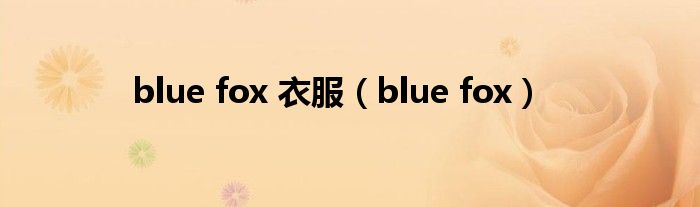 大家好,小问来为大家解答以上问题。blue fox 衣服,blue fox这个很多人还不知道,现在让我们一起来看看吧!