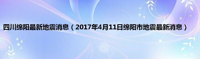 本文,四川绵阳最新地震消息,2017年4月11日绵阳市地震最新消息到此就分享完毕,希望对大家有所帮助。