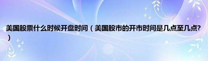 本文,美国股票什么时候开盘时间,美国股市的开市时间是几点至几点?到此就分享完毕,希望对大家有所帮助。