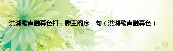 大家好,小问来为大家解答以上问题。洪湖歌声融暮色打一滕王阁序一句,洪湖歌声融暮色这个很多人还不知道,现在让我们一起来看看吧!
