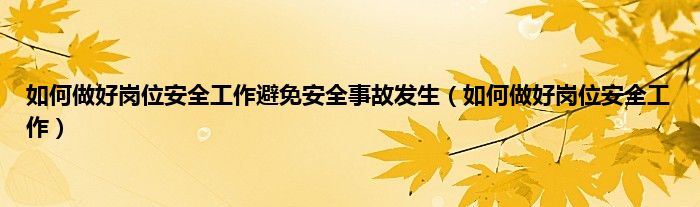 以上就是【如何做好岗位安全工作避免安全事故发生,如何做好岗位安全工作】相关内容。
