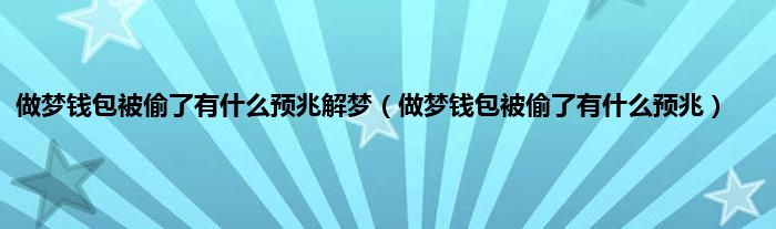 大家好,综合小编来为大家讲解下。做梦钱包被偷了有什么预兆解梦,做梦钱包被偷了有什么预兆这个很多人还不知道,现在让我们一起来看看吧!