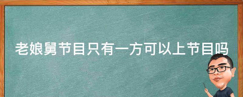 老娘舅节目只有一方不可以上节目,需要双方同时出镜。电视节目指电视台通过载有声音、图像的信号传播的作品。电视节目制作主要分成三个过程:创意与选题、拍摄、后期制作。编辑属电视节目后期制作系统,主要有早期的线性编辑和非线性编辑系统两个发展阶段。后期制作是在制作中心机房完成的。制作中心机房的技术设备包括视频切换机、视频特技发生器、录像机、字幕机、编辑机、监视器、同步机、视频信号分配器以及音响设备等。