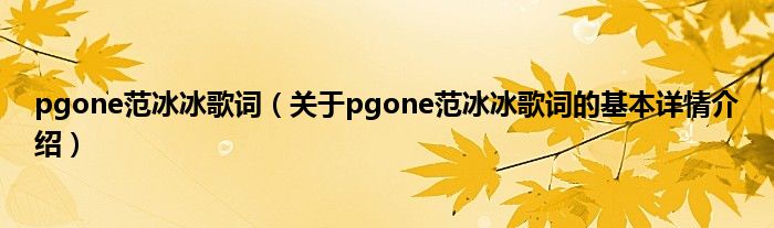 本文关于pgone范冰冰歌词的基本详情介绍就讲解完毕,希望对大家有所帮助。
