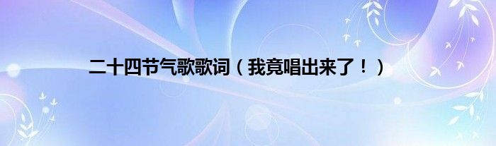 大家好,综合小编来为大家讲解下。二十四节气歌歌词,我竟唱出来了!这个很多人还不知道,现在让我们一起来看看吧!