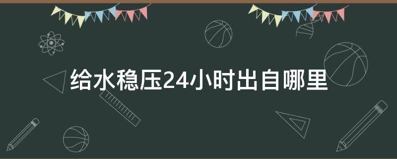 给水稳压24小时出自《消防给水及消火栓系统技术规范》。国标《消防给水及消火栓系统技术规范》GB 50974-2014规定:水压强度试验的测试点应设在系统管网的最低点,对管网注水时,应将管网内的空气排净,并应缓慢升压,达到试验压力后,稳压30min后,管网应无泄漏、无变形,且压力降不应大于0.05MPa。水压严密性试验应在水压强度试验和管网冲洗合格后进行,试验压力应为系统工作压力后,稳压24h,应无泄漏。