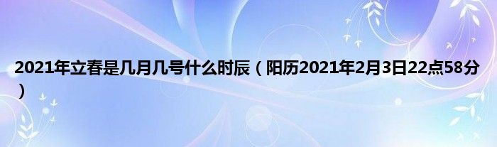本文2021年立春是几月几号什么时辰,阳历2021年2月3日22点58分到此分享完毕,希望对大家有所帮助。