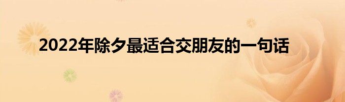 大家好,综合小编来为大家讲解下。2022年除夕最适合交朋友的一句话这个很多人还不知道,现在让我们一起来看看吧!