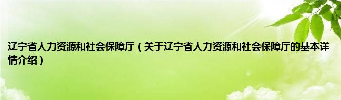 本文关于辽宁省人力资源和社会保障厅的基本详情介绍就讲解完毕,希望对大家有所帮助。