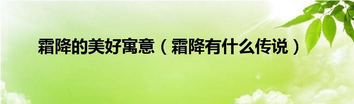 大家好,综合小编来为大家讲解下。霜降的美好寓意,霜降有什么传说这个很多人还不知道,现在让我们一起来看看吧!