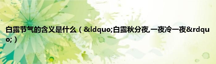 本文白露节气的含义是什么,“白露秋分夜,一夜冷一夜”到此分享完毕,希望对大家有所帮助。