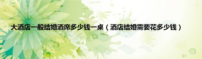 大家好,综合小编来为大家讲解下。大酒店一般结婚酒席多少钱一桌,酒店结婚需要花多少钱这个很多人还不知道,现在让我们一起来看看吧!