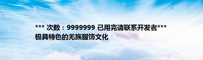 本文*** 次数:9999999 已用完请联系开发者*** 极具特色的羌族服饰文化到此分享完毕,希望对大家有所帮助。