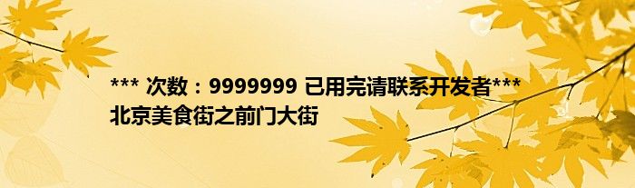 本文*** 次数:9999999 已用完请联系开发者*** 北京美食街之前门大街到此分享完毕,希望对大家有所帮助。