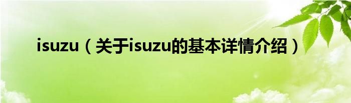 本文关于isuzu的基本详情介绍就讲解完毕,希望对大家有所帮助。