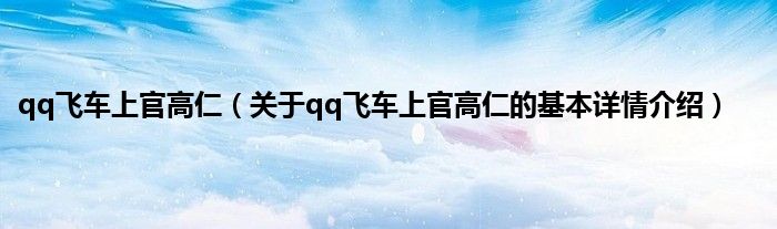 本文关于qq飞车上官高仁的基本详情介绍就讲解完毕,希望对大家有所帮助。