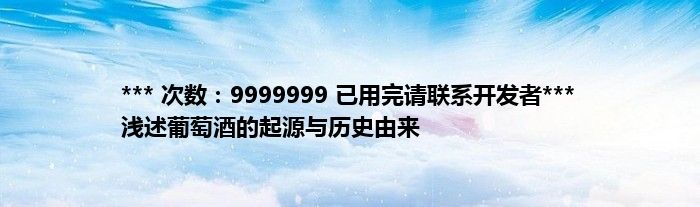 大家好,综合小编来为大家讲解下。*** 次数:9999999 已用完请联系开发者*** 浅述葡萄酒的起源与历史由来这个很多人还不知道,现在让我们一起来看看吧!