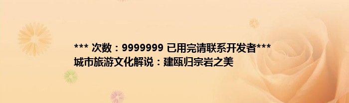 本文*** 次数:9999999 已用完请联系开发者*** 城市旅游文化解说:建瓯归宗岩之美到此分享完毕,希望对大家有所帮助。