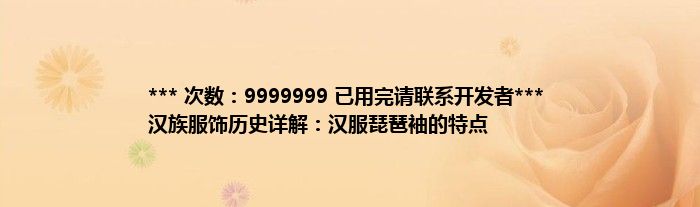 本文*** 次数:9999999 已用完请联系开发者*** 汉族服饰历史详解:汉服琵琶袖的特点到此分享完毕,希望对大家有所帮助。