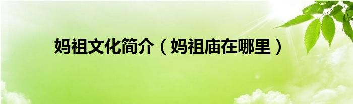 大家好,综合小编来为大家讲解下。妈祖文化简介,妈祖庙在哪里这个很多人还不知道,现在让我们一起来看看吧!