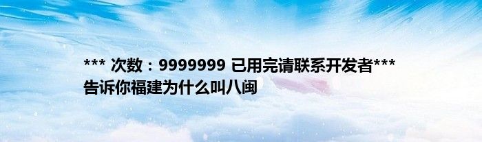 大家好,综合小编来为大家讲解下。*** 次数:9999999 已用完请联系开发者*** 告诉你福建为什么叫八闽这个很多人还不知道,现在让我们一起来看看吧!