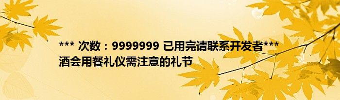 本文*** 次数:9999999 已用完请联系开发者*** 酒会用餐礼仪需注意的礼节到此分享完毕,希望对大家有所帮助。