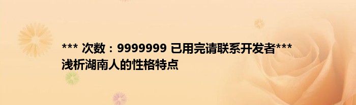 本文*** 次数:9999999 已用完请联系开发者*** 浅析湖南人的性格特点到此分享完毕,希望对大家有所帮助。