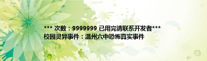 本文*** 次数:9999999 已用完请联系开发者*** 校园灵异事件:温州六中恐怖真实事件到此分享完毕,希望对大家有所帮助。