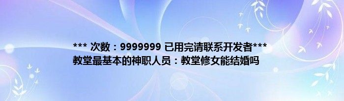 本文*** 次数:9999999 已用完请联系开发者*** 教堂最基本的神职人员:教堂修女能结婚吗到此分享完毕,希望对大家有所帮助。