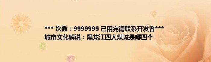 本文*** 次数:9999999 已用完请联系开发者*** 城市文化解说:黑龙江四大煤城是哪四个到此分享完毕,希望对大家有所帮助。