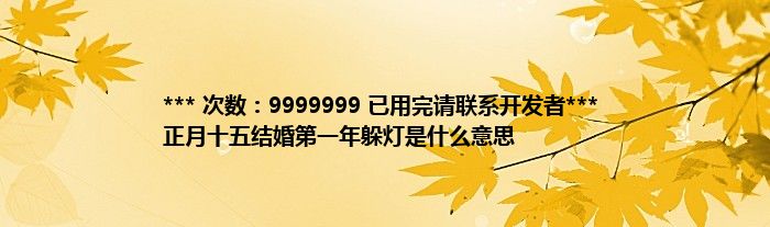 大家好,综合小编来为大家讲解下。*** 次数:9999999 已用完请联系开发者*** 正月十五结婚第一年躲灯是什么意思这个很多人还不知道,现在让我们一起来看看吧!