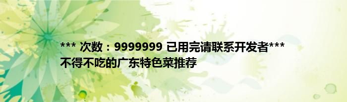 大家好,综合小编来为大家讲解下。*** 次数:9999999 已用完请联系开发者*** 不得不吃的广东特色菜推荐这个很多人还不知道,现在让我们一起来看看吧!