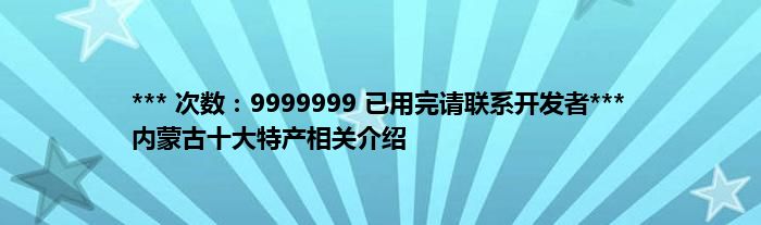 本文*** 次数:9999999 已用完请联系开发者*** 内蒙古十大特产相关介绍到此分享完毕,希望对大家有所帮助。