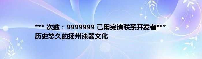 大家好,综合小编来为大家讲解下。*** 次数:9999999 已用完请联系开发者*** 历史悠久的扬州漆器文化这个很多人还不知道,现在让我们一起来看看吧!