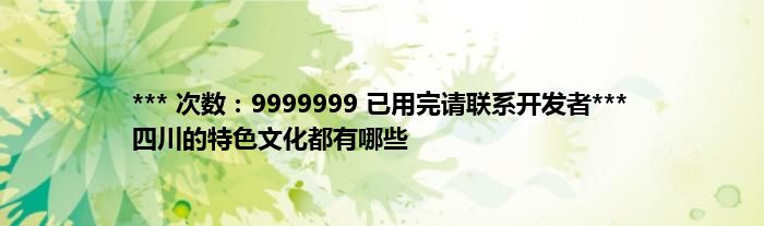 大家好,综合小编来为大家讲解下。*** 次数:9999999 已用完请联系开发者*** 四川的特色文化都有哪些这个很多人还不知道,现在让我们一起来看看吧!