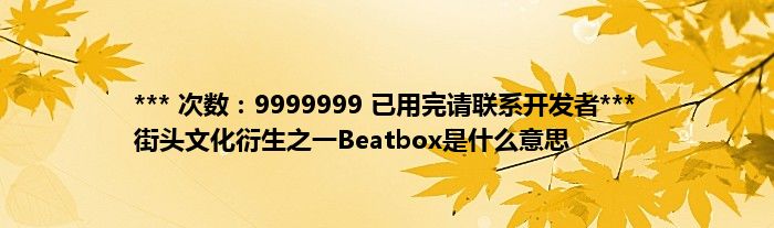 大家好,综合小编来为大家讲解下。*** 次数:9999999 已用完请联系开发者*** 街头文化衍生之一Beatbox是什么意思这个很多人还不知道,现在让我们一起来看看吧!