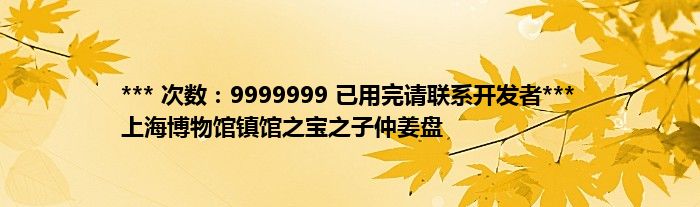 大家好,综合小编来为大家讲解下。*** 次数:9999999 已用完请联系开发者*** 上海博物馆镇馆之宝之子仲姜盘这个很多人还不知道,现在让我们一起来看看吧!