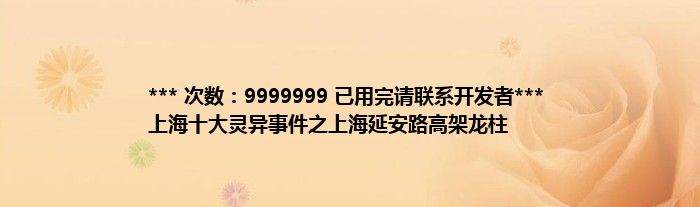 本文*** 次数:9999999 已用完请联系开发者*** 上海十大灵异事件之上海延安路高架龙柱到此分享完毕,希望对大家有所帮助。