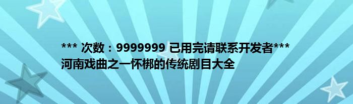 本文*** 次数:9999999 已用完请联系开发者*** 河南戏曲之一怀梆的传统剧目大全到此分享完毕,希望对大家有所帮助。