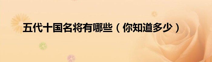 大家好,综合小编来为大家讲解下。五代十国名将有哪些,你知道多少这个很多人还不知道,现在让我们一起来看看吧!