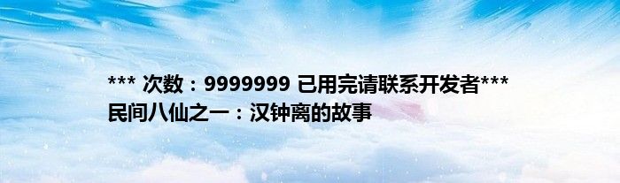 大家好,综合小编来为大家讲解下。*** 次数:9999999 已用完请联系开发者*** 民间八仙之一:汉钟离的故事这个很多人还不知道,现在让我们一起来看看吧!